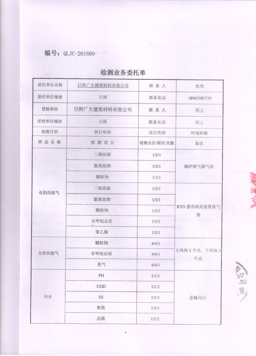 日照廣大建筑材料有限公司第四季度檢測報(bào)告