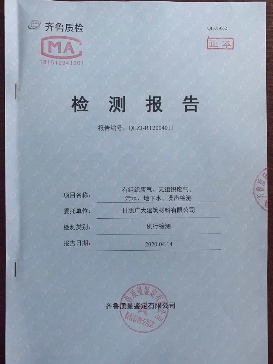 日照廣大建筑材料有限公司2020年第一季度環(huán)境信息公開(kāi)